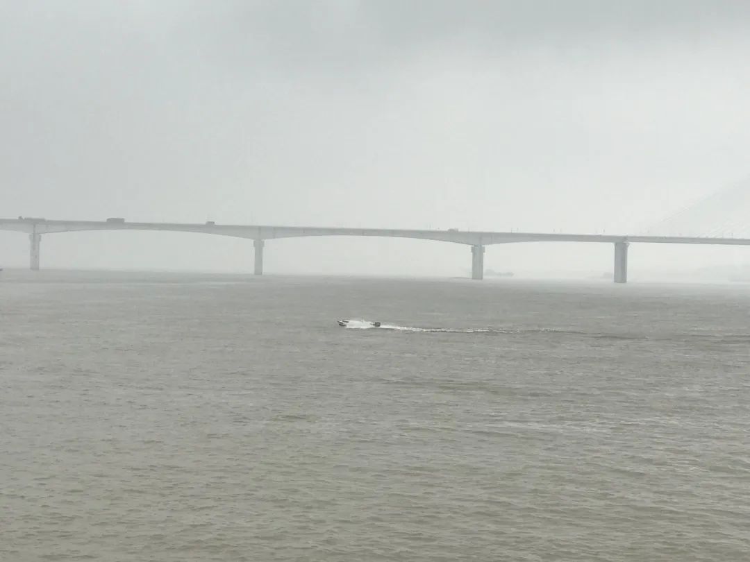 落在无人船上的雨水被甩开,形成一片片透明的水雾,美轮美奂。江面如被剑劈成两半,飞溅的水花包裹着无人船,好似一对翅膀,无人船犹如一只正在踏浪起飞的白鸟,它行驶速度飞快可以比拟快艇,身形灵活程度更是远超我们测量大艇,正如一个在江上劈波斩浪的“游泳健将”。浅滩测量、整治建筑物测量,无人船一直是测绘中心的主力“健将”。