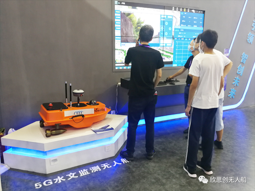 图为展会现场5G水文监测无人船引来数位专业人士驻足参观