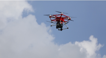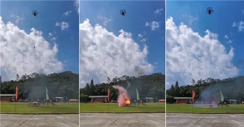 图|F240风火轮从空中投掷灭火弹,迅速且精准地将火情扑灭