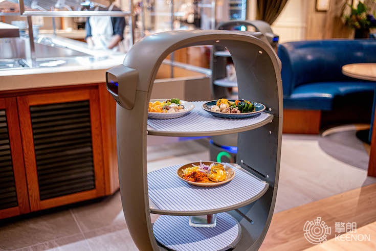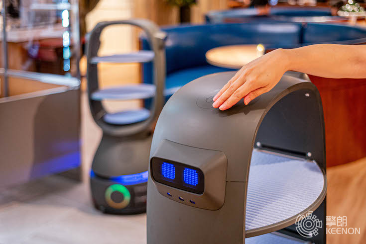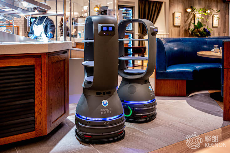 亚洲的其他一些餐厅已经开始在疫情期间启用机器人服务员。Garlic主题意式餐厅,甚至让机器人为堂食顾客服务。走进Garlic主题意式餐厅,一台叫做“Peanut”的机器人会在其三层开放式托盘载着美食,前往各个桌台前送餐。而服务员只需要守候在顾客的身边,机器人一到,第一时间把美食上到餐桌上。