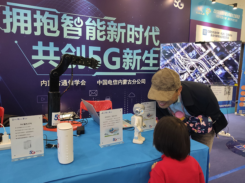 中国电信内蒙古分公司工作人员介绍说,5G赋能未来,中国电信内蒙古分公司将本次参展主题定为“拥抱智能新时代,共创5G新生活”是因为5G具有大宽带、低时延、多连接等特点,未来将全面改变人们的生活。现场看到的猜拳机器人正是借助5G超低时延特点,才能快速捕捉拳头动作并急速作出反应。