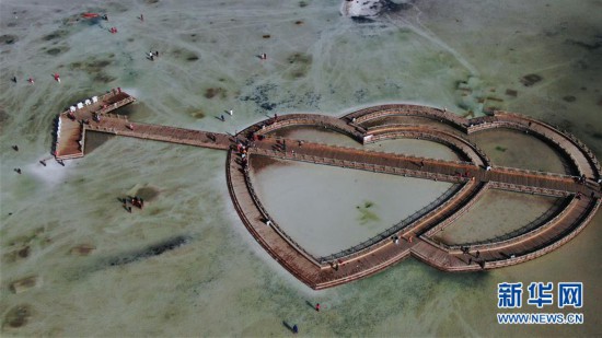 这是9月23日拍摄的茶卡盐湖“天空之镜”景区一角(无人机照片)。新华社记者 张龙 摄