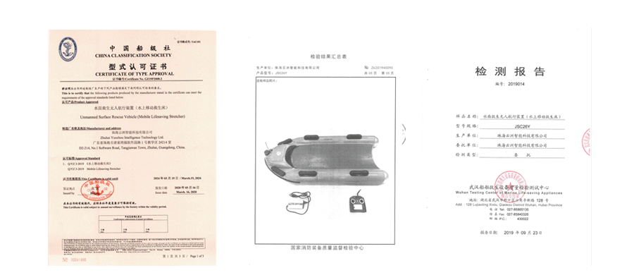 “水上飞”经过多重产品测试,消防装备检测报告、船级社CCS认证、武汉船舶检测中心等资质齐全,符合抗灾救援物资标准。