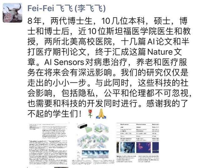 不久前,斯坦福大学人工智能专家李飞飞和她的研究团队在顶尖学术期刊Nature发表了一篇题为《利用环境智能照亮医疗的黑暗空间》的论文,主要阐释了通过人工智能与非接触式传感器结合,以实现“环境智能”,以深度改善医疗保健服务的潜在层面,从而提升医院等医疗机构的整体救护能力,提高医护人员的救治效率。