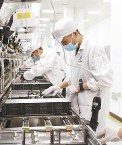 工人在湘江鲲鹏一期服务器生产车间工作。资料图片