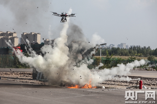 无人机投掷灭火弹(央广网记者徐升摄)
