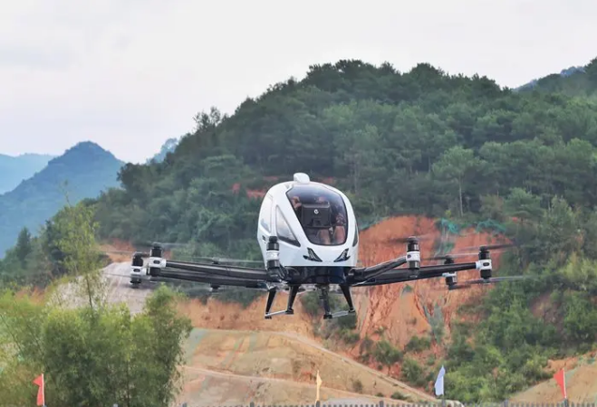 2020年9月,亿航216来到甘肃,带领乘客在空中欣赏绝美丹霞地貌,完成了飞行“的士”初体验。