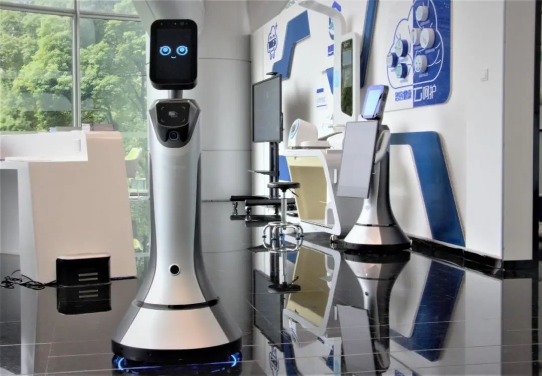 市民家门口有了“机器人健康加油站”此次开张的智慧健康小屋分为4个模块,除了健康自我评估、健康自助检测、体质自测自检服务外,第4个模块为猎户星空服务机器人豹小秘系列的医疗解决方案:豹小秘在引导居民操作检测后,医疗定制版豹小秘DP-“豹小医”搭载的全科视频医生会对用户进行问诊,这两台机器人还会配合5G进行大数据分析,再将数据传回云端。