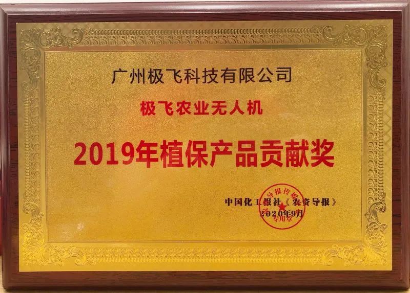 近日,由中国化工报社《农资导报》主办,中国植保协会植保产品推广工作委员会指导的 2019 植保产品贡献奖及推广奖颁奖盛典在安徽合肥举办。本次评奖中,极飞农业无人机是唯一一款获奖的无人化智能农机产品。