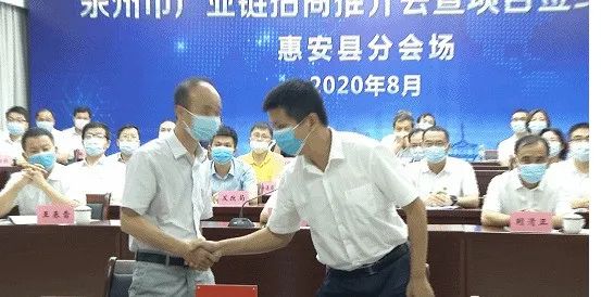 福建省泉州市惠安县委书记黄文胜在签约仪式上介绍了惠安列入泉州市产业链招商暨项目集中签约活动情况。在市县领导“屏对屏”的见证下,副县长王也夫代表县政府与音锋智能物流机器人及数字工厂产业基地项目负责人签约。