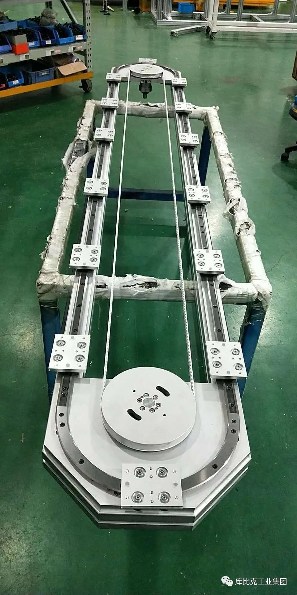 在实际应用中,环形输送线每一个滑座就代表一个工位,配合着工业机器人进行作业,一旦出现定位不准确会影响产品的质量,加工出来的产品就是不良品,因此很多企业都会跟生产厂家强调精度。环形导轨是通过初次定位和重复定位来实现它的高精度,保障初次定位的准确性,然后通过二次定位进行修正,定位精度是±0.01mm,经过调整重复定位精度可达±0.05mm,一般精度技术要求不高容易达到,±0.05mm的高精度技术要求比较高,库比克的专业技术团队可达到这一要求。