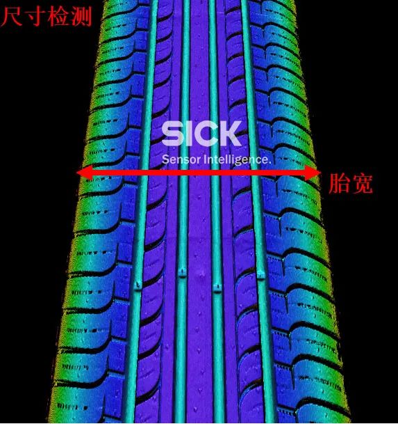 使用SICK 3D相机分别对胎侧、胎面、胎内壁进行在线扫描,可对尺寸、缺陷实时检测、分析,把控轮胎成品的质量。