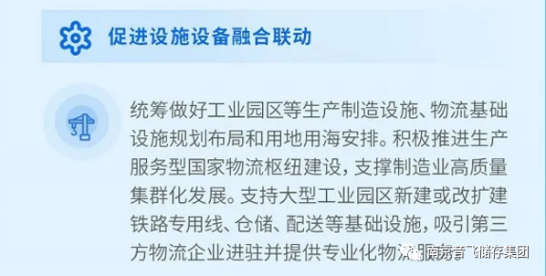 《实施方案》提出:支持大型工业园区新建或改扩建铁路专用线、仓储、配送等基础设施,吸引第三方物流企业进驻并提供专业化物流服务。