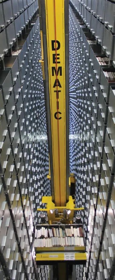 25年来,德马泰克已经在世界各地的图书馆和档案馆安装了部分和全自动化系统, 它的可扩展系统可以容纳大量的书籍,并通过软件进行智能控制和自动化。其中涉及的数字确实令人震惊,超过一千万种图书、杂志和文档,只需要传统图书馆档案系统约七分之一的空间就可以存储。从图书馆的借阅系统在线申请,到选定的书籍在指定点准备就绪,所需时间不超过5分钟!
