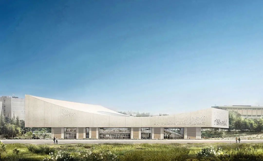 犹太国家和大学图书馆于1892年在耶路撒冷成立,2008年更名为以色列国家图书馆。这座容纳以色列"知识之源"的新建筑位于耶路撒冷希伯来大学校区,由曾经担任过2008年北京奥运会主会场鸟巢的瑞士著名建筑师Herzog & de Meuron设计。方案融合过去、现在和未来,打造独特的场地环境。当图书被快速运送到取书点时,参观者可以通过大型全景窗直观地参与到这个自动化的过程中,这也是这个螺旋形图书馆的另一个引人注目的建筑特点。