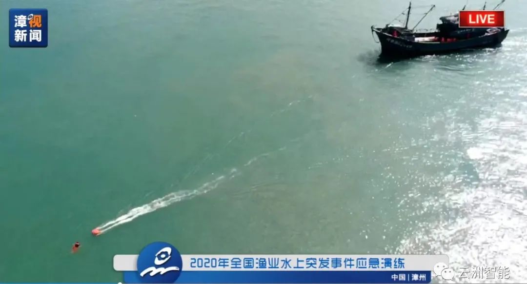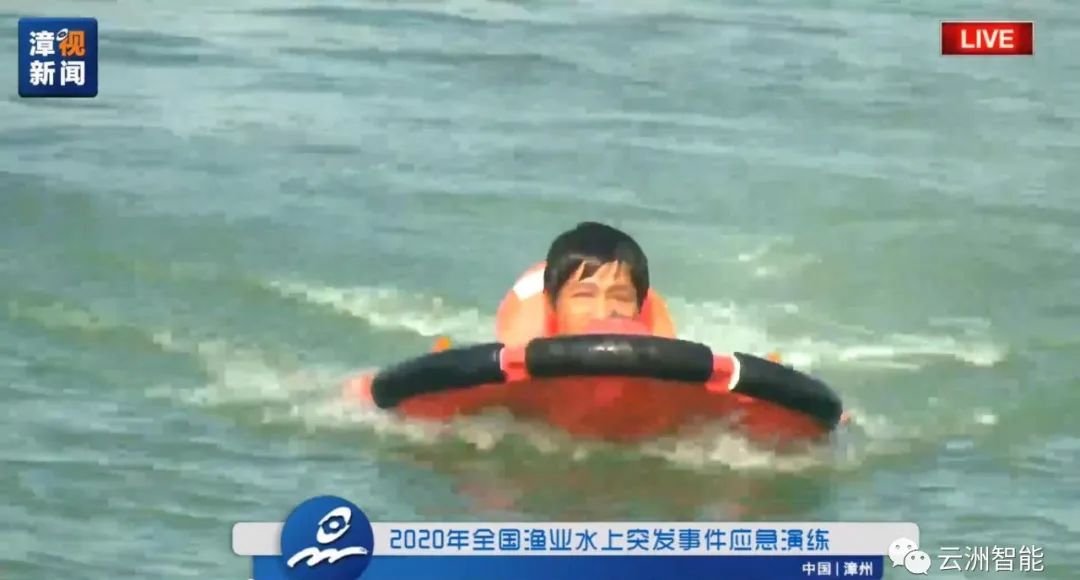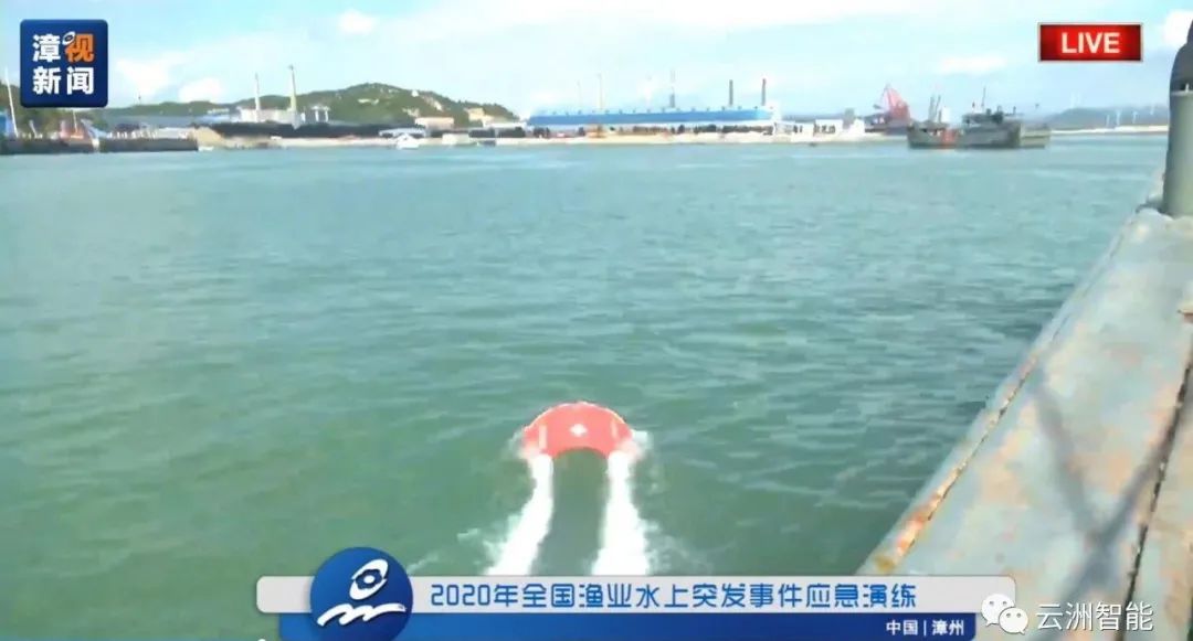 本次演练以受台风影响,渔船回港避风途中,发生商渔船碰撞、船员落水、渔船起火等事故为背景,实景实战模拟渔船自救互救、海陆空组织搜救,采用不同方式救助伤员和落水人员的情形,突出了涉海部门联动和渔船自救互救、联合搜救的演练特色。演练中,某渔船在避风回港途中突遇浪涌,有2名船员不慎落水,其中一人随海浪飘离船只近百米。时间就是生命,船长立即组织自救互救,快速将船上配备的水面救生机器人抛投至海面,在船上使用控制器令其快速、精准航行至落水者身边,并顺利将其拖载回船边,成功救起落水人员,整个过程不到3分钟。云洲智能“海豚1号”水面救生机器人自重仅13kg,一人单手即可提起;抛落水面即可遥控启动出发,操作简单;强劲电力驱动,能同时搭载2-3人,可在800米范围内进行远距离遥控,救援人员无须涉水。它安全、稳定、高效的特点,为水上救援赢得了宝贵时间,并充分保障船员生命安全。