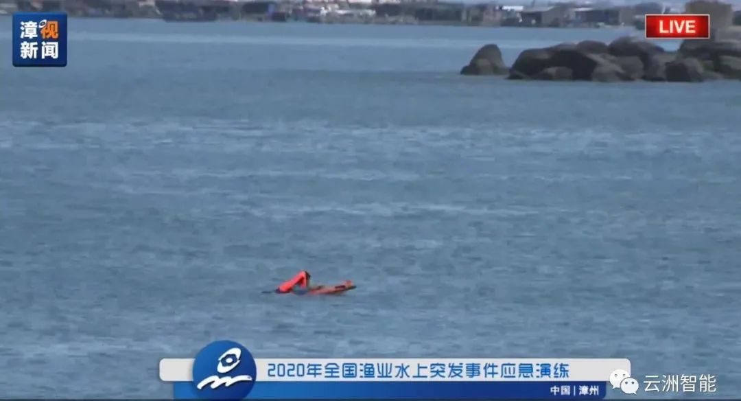9月11日上午,在福建省东山县大澳中心渔港西侧海域,2020全国渔业水上突发事件应急演练成功举办。云洲智能“海豚1号”水面救生机器人及水上移动救生床参与演练,圆满高效完成救援任务。云洲水面救生机器人与水上移动救生床在渔业水上突发事件应急处置中的应用,得到了农业农村部副部长于康震的现场肯定。