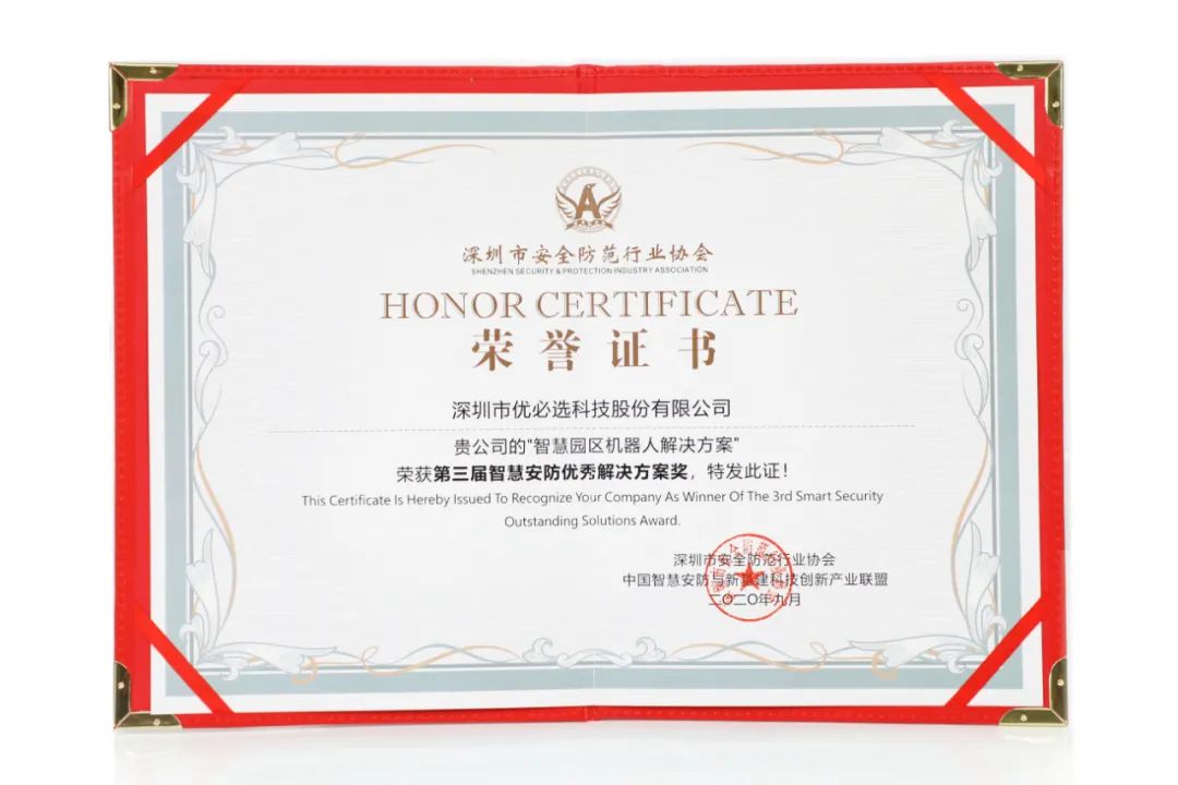 在同时举办的第三届“智慧安防优秀解决方案”评选活动中,优必选科技凭借深厚的技术实力、创新能力以及行业影响力,以“智慧园区机器人解决方案”获得“2020年第三届智慧安防优秀解决方案”殊荣。