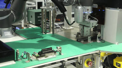 打标、外观检查、下料与搬送,全部由协作机器人与移动操纵机器人(MoMA)之间配合完成,实现高度自动化生产。