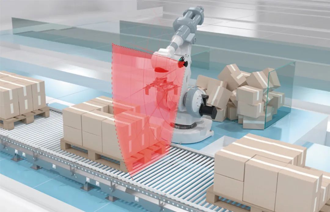 在仓储和物料搬运领域,机器人与水平输送机配合使用,通过激光雷达传感器,准确扫描出目标物轮廓外形,引导机器臂完成下一步的物料分拣、无序抓取、物流拆垛等功能。