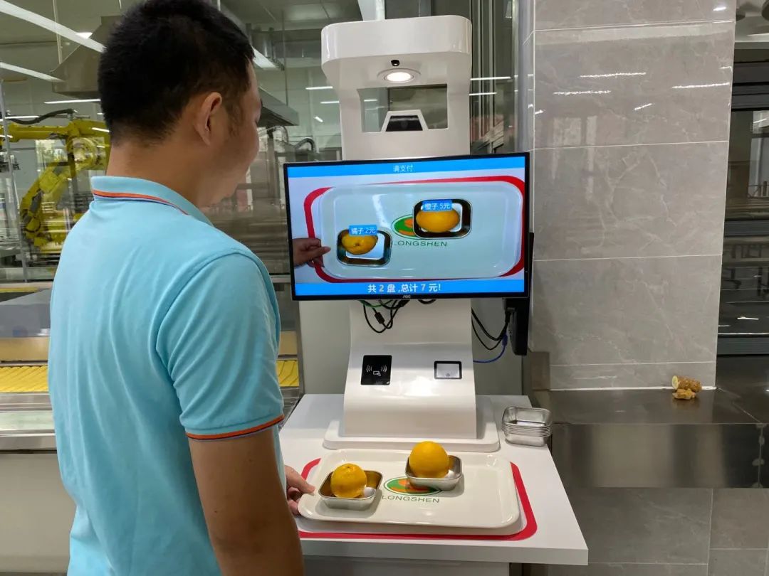 值得一提的是,食堂的买单结账同样实现了智能化,食堂大厅内设置了3台智能结算设备,学生只需将放着菜肴的餐盘放在台子上,系统即可自动识别菜品种类和价格,方便快捷地进行支付结算。