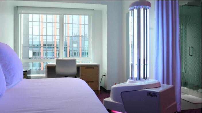 9月初,位于波士顿海港区的拥有326间客舱的波士顿Yotel旅馆宣布将实施UVD机器人技术。从2020年9月15日开始,Yotel内的部分客舱在空置时将由UVD机器人进行清洁,而所有高接触公共场所也在关闭时进行消毒。