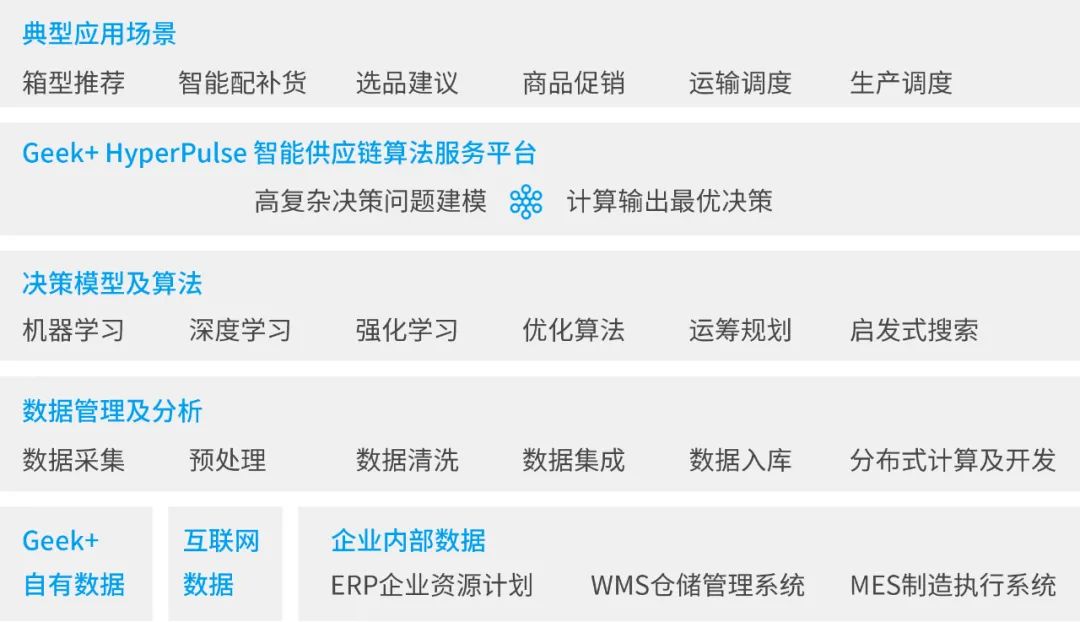 在智能供应链服务方面,极智嘉打造了智能供应链算法服务平台HyperPulse。