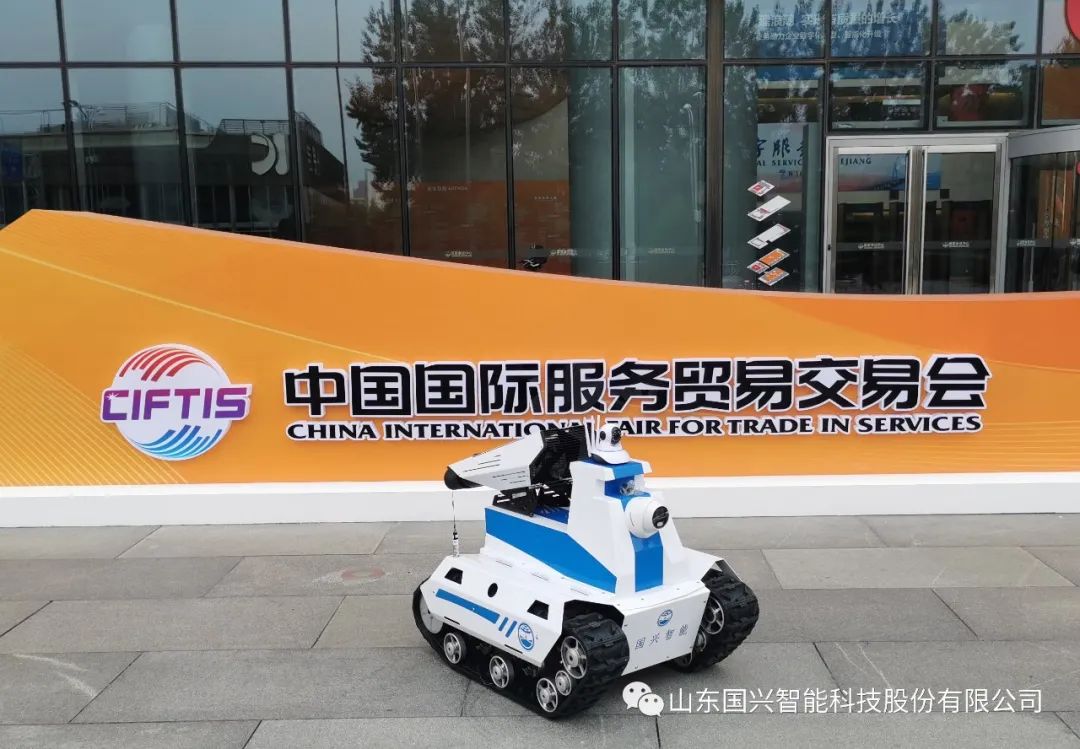 本月,国兴智能自主研发的智能消杀战疫机器人亮相中国(北京)国际服务贸易交易会。