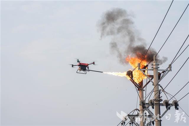 湖北日报讯(通讯员杨萌、余健兵)“以前只在网上看过无人机喷火,今天在现场看到用无人机消灭了马蜂窝!”9月30日17时许,在安陆市孛畈镇曹棚村,电力工人用无人机清除马蜂窝,让村民看了场稀奇。