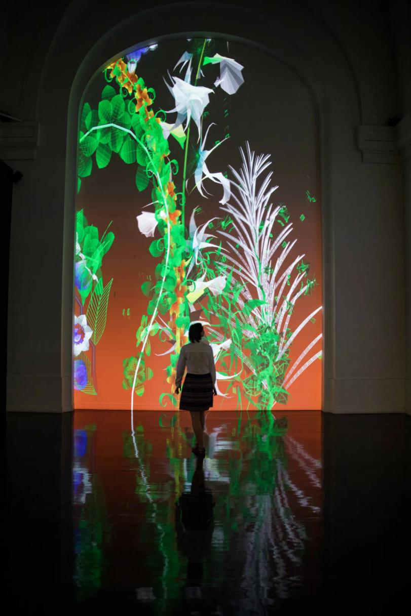 米格尔·舍瓦利耶,《超自然2018》,2018,生成式虚拟现实互动装置,尺寸可变/软件支持:希里勒·亨利、安东尼·维勒雷观众熙攘专注,努力捕捉不同作品的声响,他们手里的设备稳稳地,不愿放过任何一个美妙或诡秘的瞬间。鲜花、动物、孩童,五彩缤纷,瞬息万变,生机盎然的展品扭转了我的既定印象。