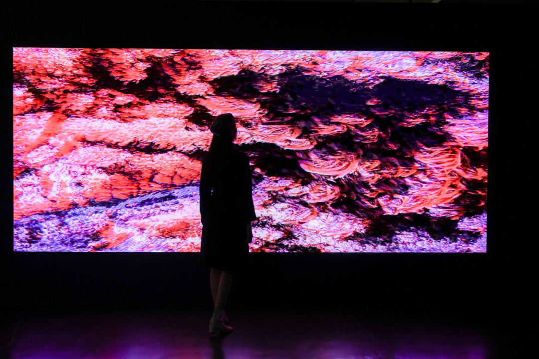 “非物质 / 再物质:计算机艺术简史”展览现场,UCCA尤伦斯当代艺术中心屏幕在我眼中投下千变万化的光影,层层细节被揭示和呈现,展示着物质化的过程。每隔几秒,它会开始一个新的循环,亦是生命的进化周期。