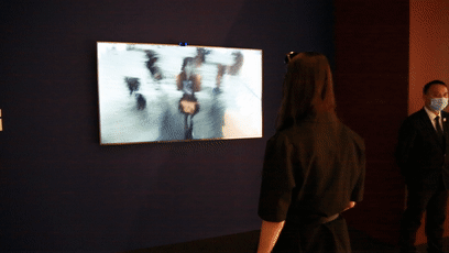 另一侧,《达尔文式旋转线之镜》的线条、亮度和节奏,在交互式显示屏上时隐时现,百度图像技术,精准识别超过十万种物体和场景,根据观众的形象来强调特定部分的笔触如何分布。