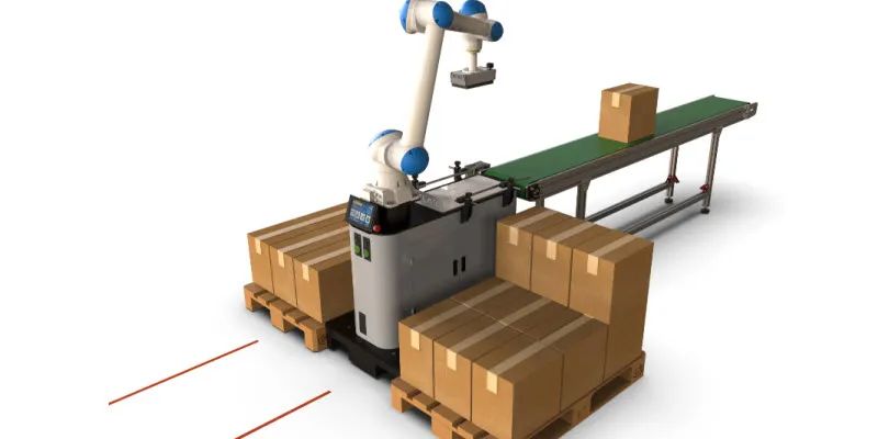 AGV和协作机器人的敏捷性为该码垛单元提供了巨大的多功能性。为了移动设备,人们可以在AGV原本的代码上面继续添加代码,AGV车辆可以读取这些代码来做出移动性决策。这种自主权允许该单元一天24小时不间断工作,并根据需要更改位置。