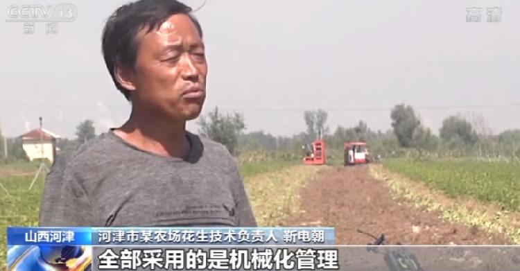 河津市某农场花生技术负责人 靳电朝:这块地种了260亩花生,全部采用的是机械化管理,收割三天就全部完成了。