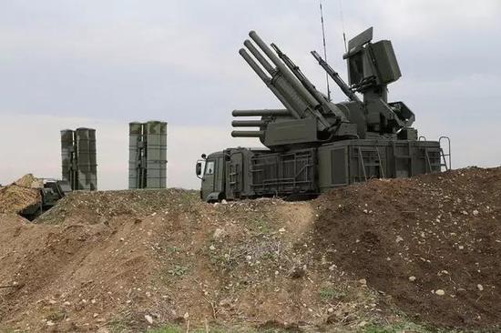 图片:俄罗斯在叙利亚,用“铠甲”S1近程防空系统来保护远处的S-400远程防空系统。
