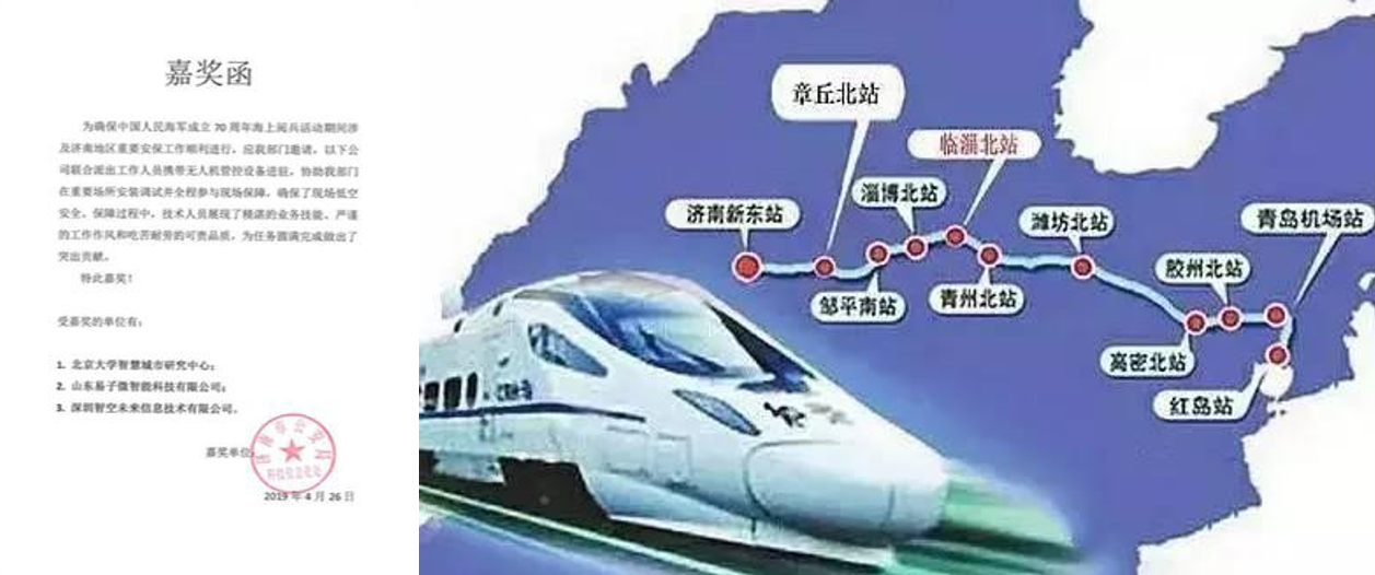 2019 年 4 月 23 日,海军成立 70 周年多国海军阅兵活动在青岛及其附近海空域 举行。为保障低空领域安全,我司应济南市公安局邀请,携带无人机管控设备进 驻,保障济青高铁沿线低空安全。为习主席出行保驾护航。