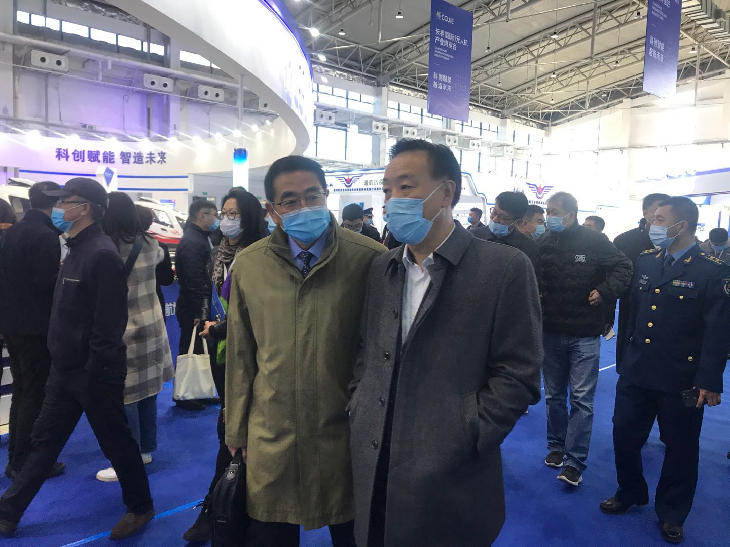中国航协通航分会领导在无人机展馆现场进行交流