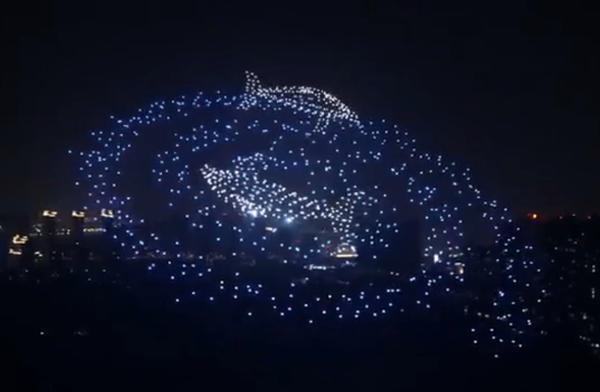 夜幕还未降临,中国二砂文创园广场就已经人头攒动,在万众翘首中,千架无人机编队,带着璀璨的灯光,腾空而起。随着灯光布阵交错起落、变换色彩,在夜幕中勾勒出一幅又一幅的炫目画卷,用科技力量碰撞二砂工业文化,开启了二砂文创园未来发展的新纪元。