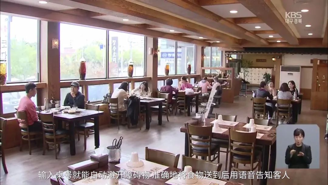客人朴大成(音译):“我感觉很神奇啊......现在面对新冠肺炎时代,有机器人送餐我们也觉得很安心...”