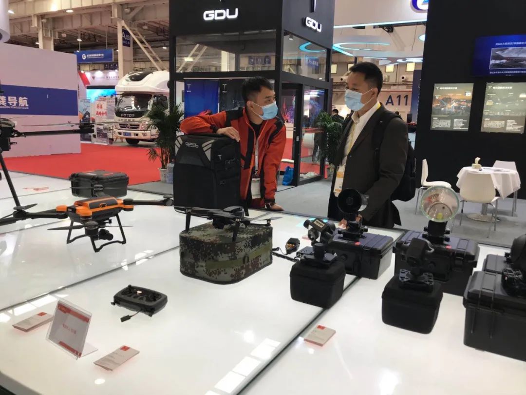 ▲展台上的多旋翼无人机引来咨询者