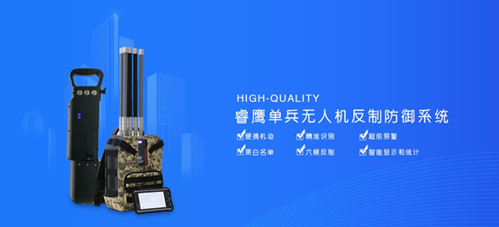 目前市场上最常见的无人机防御设备是无人机反制枪,主要借助于人眼发现目标无人机,再使用反制枪瞄准和干扰压制。这种方法距离短,不能及时发现目标无人机,睿鹰背包式无人机检测设备可以帮助用户及时发现无人机,报告无人机型号,并且预警。该设备与反制枪配合使用,使得单兵就具有完整的无人机侦测和防御功能。设备包括侦测单元和显示終端,它们之间通过无线进行连接,可以对侦测单元进行配置和管理,侦测信息在单兵终端上显示。