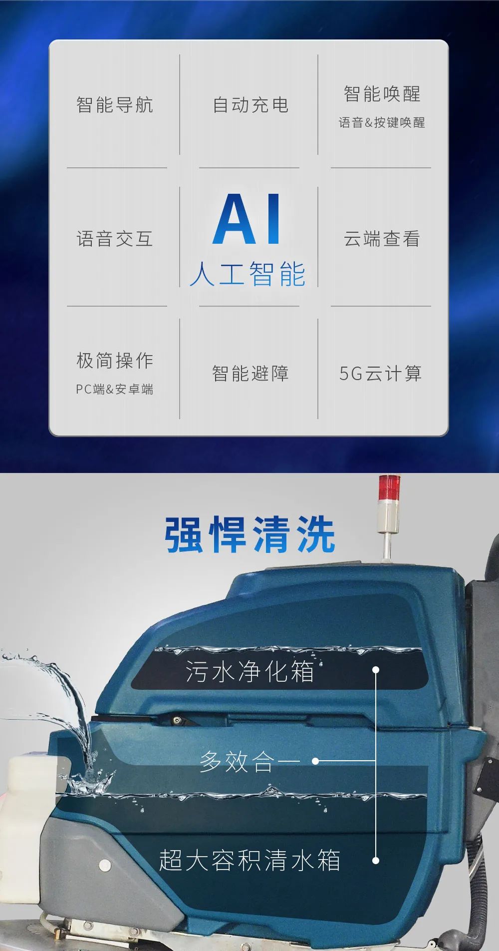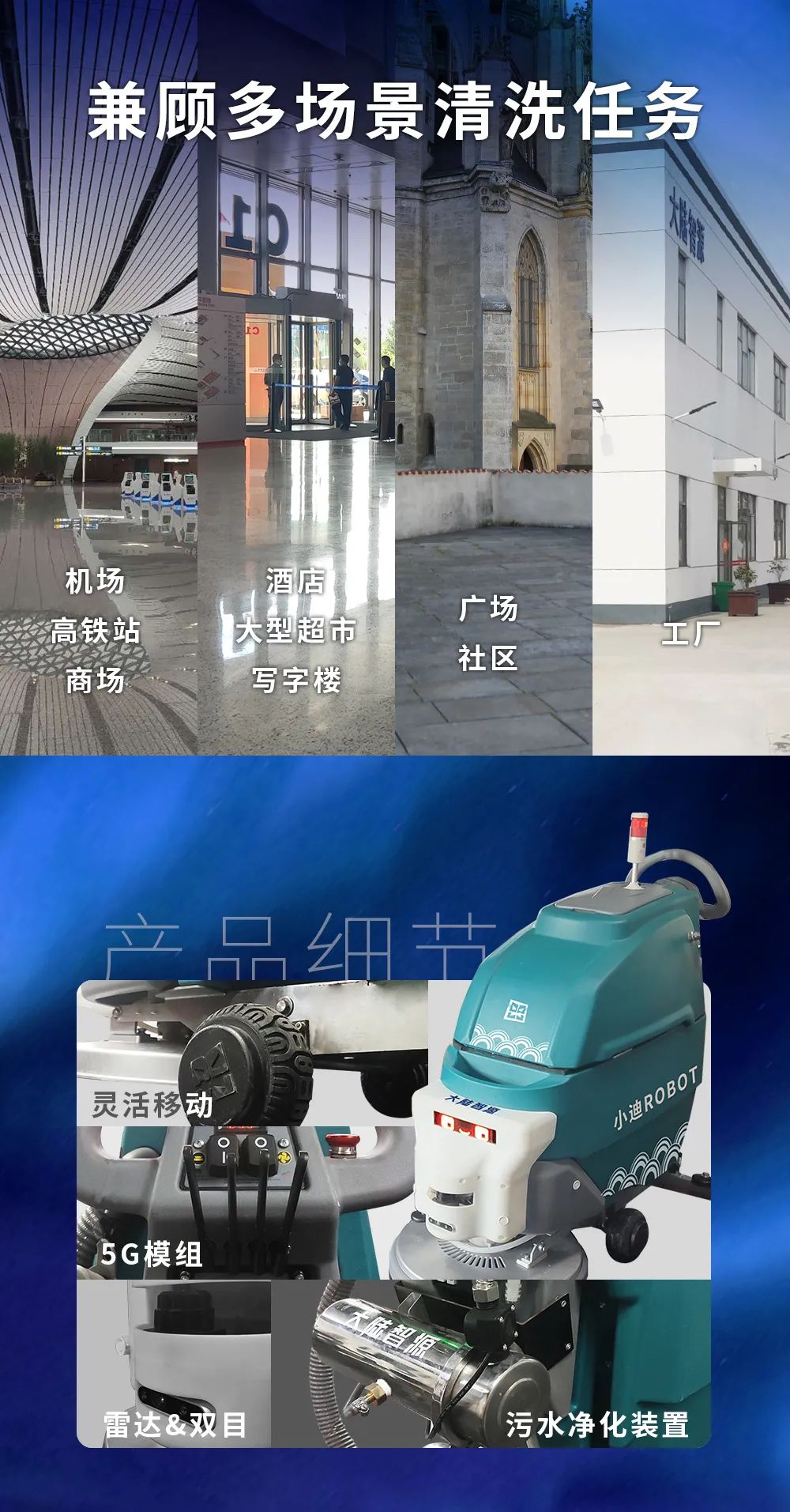 小迪-智能洗地机器人,可以在超大面积内进行超长时间不间断洗地任务。通过合理的地图规划,可实现一键洗地,自主充电,在深夜也能持续工作。