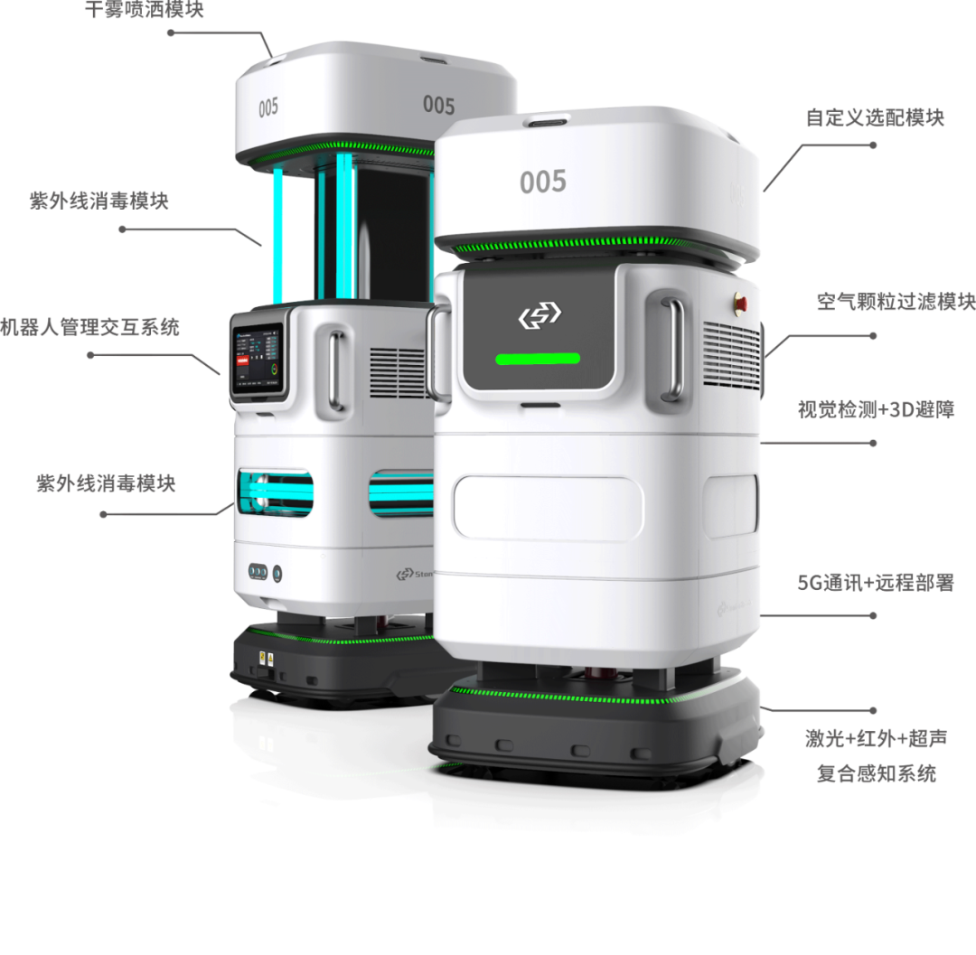 2020年,斯坦德机器人入围广东省第二批抗疫产能重点保障企业名录,并被选中为深圳市发改委关于组织实施新冠肺炎诊疗防疫设备产业化专项的九家企业之一,移动复合消毒机器人即为斯坦德产业化专项的重要成果。