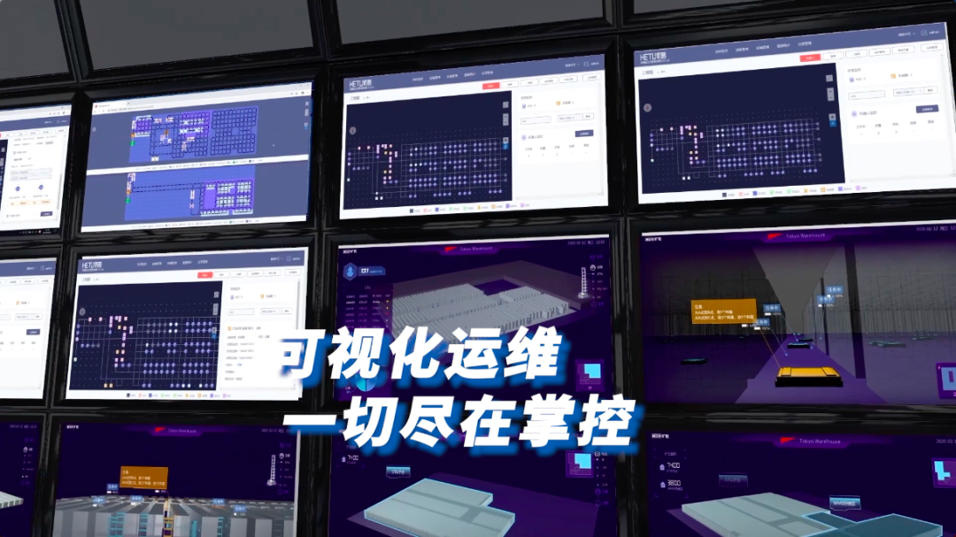 在后台的电脑上,河图系统实时显示着AGV的活动路径和运行状态。除此之外,每台AGV的实时运行位置、轨迹、剩余电量和设备健康情况均有记录,河图还能对AGV采取各类紧急控制措施,你也能看到结合PDA扫描结果而得到的每台机器人全部历史详细货运列表。根据各个时期产能和产品的不同情况,后台管理人员可以对货运策略和规则。