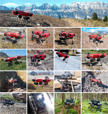 第三个概念对于实现其鲁棒性很重要。该教程根据控制器在训练过程不同阶段的表现,对不同地形进行自适应。本质上,控制器会经历各种合成地形的考验,同时变得更具鲁棒性。研究者评估了参数化地形的可通行性,并使用了粒子滤波来维持中等难度地形参数的分布,以适应神经网络的学习。训练环境的挑战性逐渐增加,促使了这种敏捷性与弹性兼具的全方位控制器的诞生。借助腿式运动控制器,机器人可以穿越一些现有方法无法到达的复杂地形。该控制器拥有在零样本环境中的泛化能力,即使遇见训练过程中未见过的条件,仍然具备鲁棒性。研究者在模拟训练中只使用了刚性地貌和一组由程序生成的地形剖面,比如山丘和台阶。然而,当控制器被部署在四足机器人上时,它能够成功应对可变化地形(比如泥土、苔藓、雪地)、动态立足点(比如在杂乱室内环境踩到滚动板、田野中的碎片)和地面障碍物(厚植被、碎石、涌出的水)。从研究结果来看,不需要进行艰苦的建模过程,以及危险且高成本的实地测试,物理世界的极度复杂性也可以被克服。这一方法或许会引领未来腿式机器人的发展。