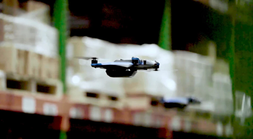 Ware由一家位于旧金山的同名初创公司开发,结合了自主的Skydio 2四轴飞行器,可为电池充电,同时栖息在仓库中的“巢”中。按照预先设定的时间表,它们会定期沿着堆叠的托盘行进并飞行-来回移动和上下移动-完成后返回巢箱。
