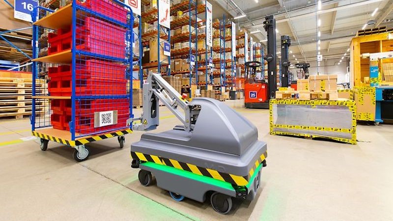 德国DB Schenker在其位于捷克帕尔杜比采(Pardubice)的Contract Logistics网站上宣布,该公司首次部署一种新型的自动移动机器人(AMR)。在当地物流公司的仓库中,名为MiR Hook 200的机器人可帮助检测和运输手推车,从而提高操作效率。