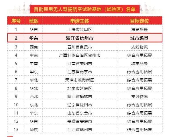 杭州市民用无人驾驶航空试验区目标定位为城市场景,将重点探索无人机在城市物流、应急医疗配送、智能亚运和应急保障等城市场景的应用。