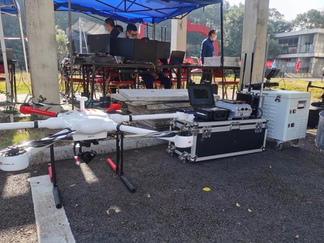 本次演练中,慧明捷提供的系留无人机传输图像清晰,通过挂载LTE专网基站设备,LTE专网信号覆盖任务现场,满足现场无网络情况下的音视频传输。