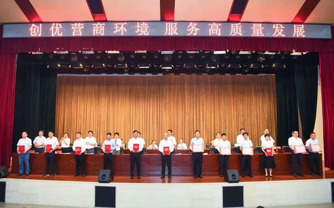 肥西县创优营商环境服务高质量发展推进大会在县派河剧场隆重召开,并表彰了2019年肥西县推动经济社会高质量发展贡献奖优秀企业、优秀企业家。安徽宇锋董事长项卫锋先生获“2019年度肥西县高质量发展优秀企业家”荣誉称号。金成俊、李煜、张俊平、朱士久、拱艳等县四大班子领导、县法院院长、县检察院检察长出席会议,会议由县委副书记、县长李煜主持。